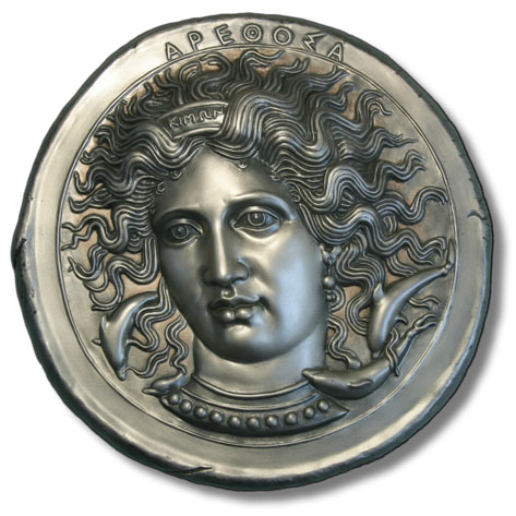 by the artist Kimon on a silver tetradrachm of the Sicilian city of Syracuse, circa 405 B.C.